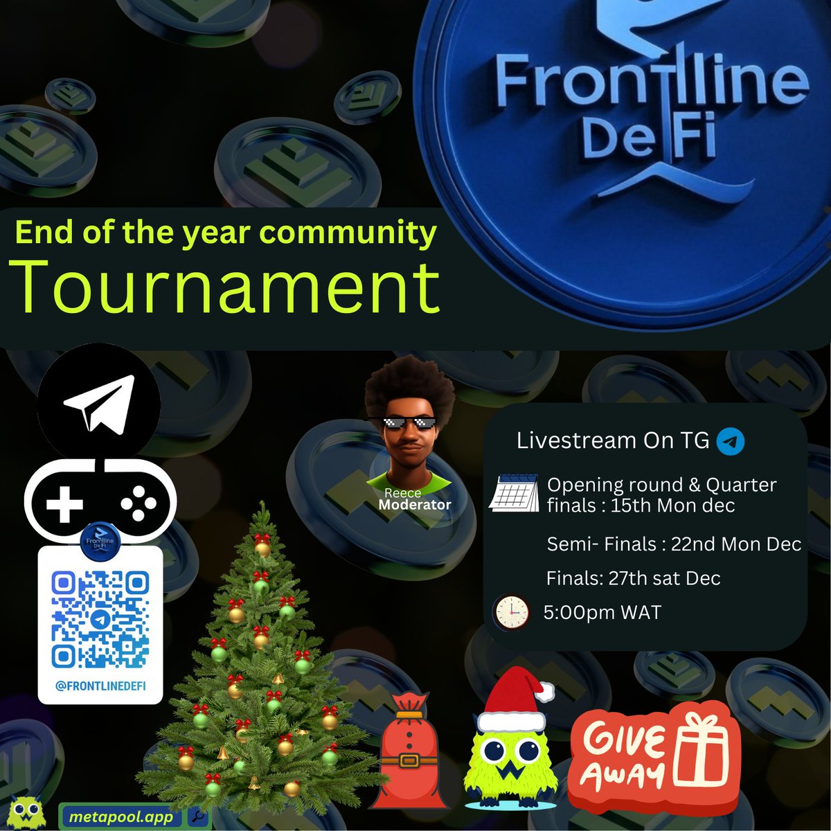 For online webinal, we coordinated a free for all gaming tournament series to cool off from all the technical terminologies we had from 2025 beginning. Live at @FrontlineDefi telegram channel, we battle through numerous games to get our top contestants win with giveaways for them .