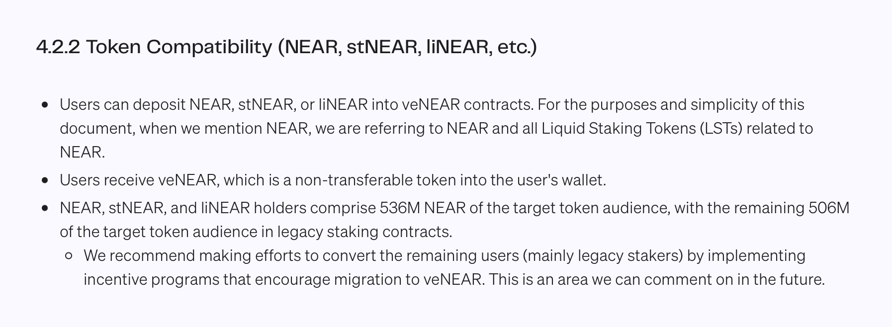“We recommend making efforts to convert the remaining users (mainly legacy stakers) by implementing incentive programs that encourage migration to veNEAR. This is an area we can comment on in the future.”