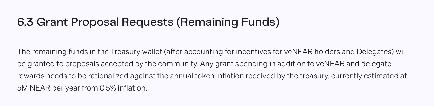 Gauntlet’s proposal enshrines point 6.3 Grant Proposal Requests as the only mechanism for spending funds in the treasury.near wallet, in addition to the spending for 6.1 Incentives to veNEAR holders and for 6.2 Incentives to Delegates.
